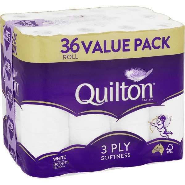 Toilet Papers-Quilton Toilet Tissue 36 Roll 3 Ply Softness White 180 sheets 11x10cm (PK)